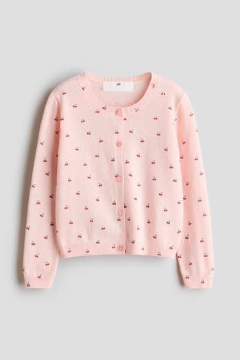 Cardigan in soft, fine-knit cotton with an all-over print. Buttons down the front, a straight hem and ribbing around the neckline, cuffs and hem.