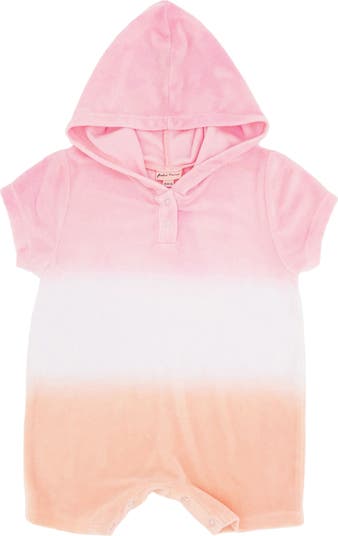 A fixed hood tops this supercozy cotton-terry cover-up romper made with convenient snaps between the legs for quick diaper changes.
