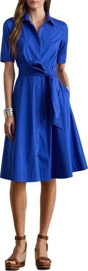 Timeless style is all yours in this classic shirtdress made with comfortable stretch and handy side pockets.