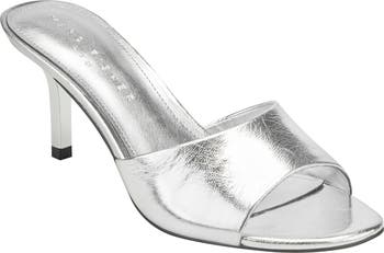 A minimalist profile and sleek leather upper define a versatile slide sandal set on a tapered heel for a stylish dose of height.