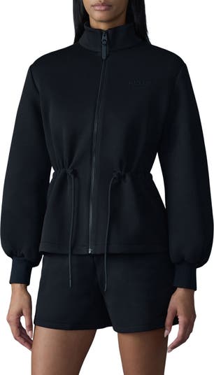 Balloon sleeves put a romantic frame on this essential jacket made from double-face jersey for lightweight warmth and fitted with a cinchable waist for enhancing both the fit and the silhouette.