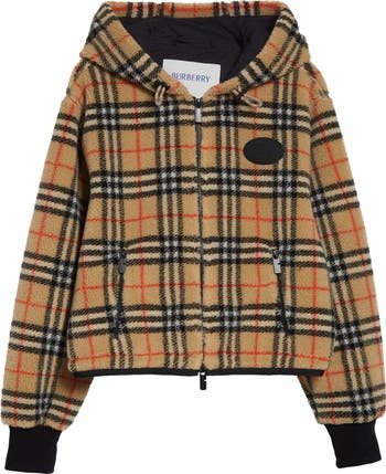Burberry Check in the signature sand colorway patterns this cropped hooded jacket made from plush cashmere-kissed fleece and lined with breathable mesh. An Equestrian Knight stamp—an archival motif from the '80s—and B-cut zip pulls add heritage house touches.