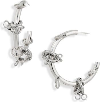 Inspired by glam rock and hardware-heavy punk influences, these handcrafted palladium-dipped open hoops are pierced and looped with ring hardware.