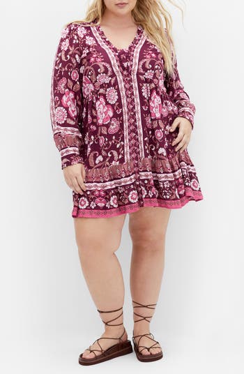 The modern-boho minidress brings free‑spirited flair into sharp focus with its intricate print, relaxed fit and flounced hem.