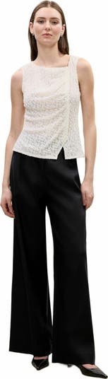 This lace top in white is a delicate yet versatile piece, perfect for adding an elegant touch to your wardrobe. Crafted from stretch lace knit fabric sourced from Japan, this sleeveless design offers both comfort and sophistication. The organic cotton blend provides a breathable, soft feel, while the intricate lace detailing elevates its timeless appeal.