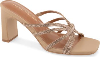 Crystal-encrusted straps make this block-heel sandal a sparkling standout for your next occasion.