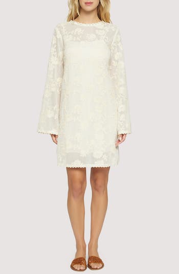 Fiorenza Floral Embroidery Long Sleeve Cotton Blend Minidress