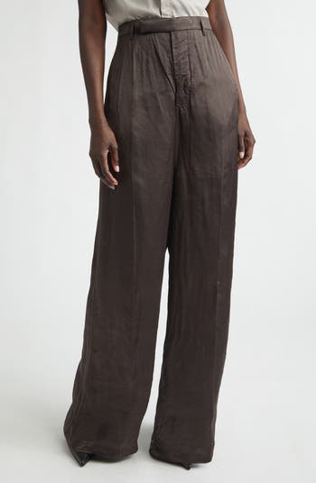 Firbanks High Waist Wide Leg Pleat Front Cupro Satin Pants