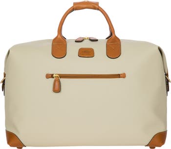 Designed and made in Italy, this small 18" duffel bag from the Firenze Collection is in an expertly crafted leather-effect material. Water-resistant and easy to clean, the colour and finish are icons of Bric’s quality. The handles and other details in real leather add to its sophisticated style. The main compartment is opened by a double-slide zip. A detachable, adjustable-length shoulder strap is included, making it easy to carry as a cross-body option. The posterior side has a band that easily slips over the handle of your luggage, a must-have convenience when travelling. Roomy yet compact, its shape makes it ideal for everyday use too, complete with inner pockets (including one with a zip) and an outer zip pocket to ensure all the essentials are easily within reach. The inner fabric lining is decorated by a refined Bric’s logo print.