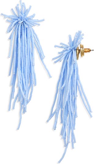Evoking the dazzling splendor of a fireworks display, these colorful earrings featuring intricate beadwork are imbued with a dramatic sense of movement.