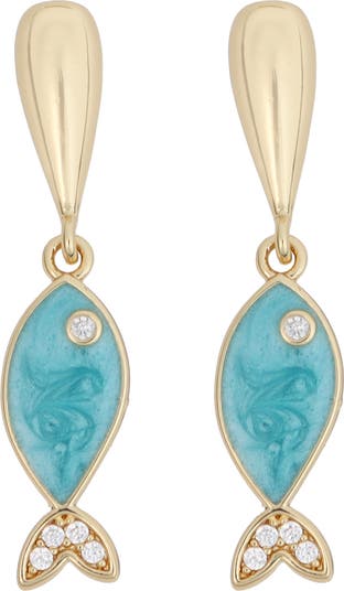 Accessorize your look with the fanciful aquatic style of these fish-shaped dropped earrings embellished with sparkling cubic zirconia stones.