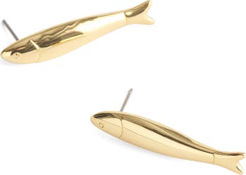 Crafted of goldtone-plated brass, these drop earrings feature a playful fish design
