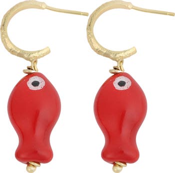 Sunny 14-karat-gold plates slim hoops in these fish-anchored earrings that make any ensemble more fun.