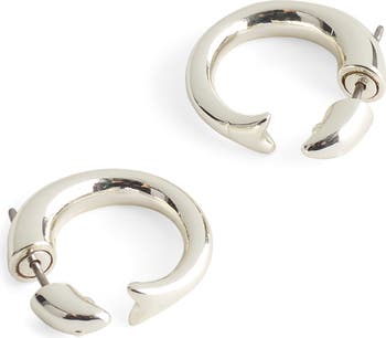 Crafted of plated recycled brass, these split hoop earrings feature a playful fish design.