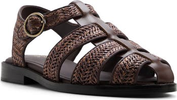 Interlocking straps create an iconic fisherman silhouette on a rich leather sandal featuring an adjustable buckle closure for a secure and comfortable fit.