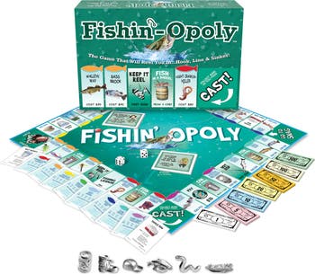 Fishin'-Opoly Board Game is a game that will reel you in, hook, line and sinker. Whether you're a guy who takes the bass boat out for the weekend, or somebody who goes to the pay lake for the evening, Gone Fishin' is a fabulous place to be. The game allows players to buy, sell and trade their favorite fish and gear with family and friends. Players choose their tokens and advance to cast. It's all fun and games until someone lands on snag, gets all hung up, and is out of the game for three turns. Late for the Sky Fishin'-Opoly Board Game is designed for all ages, adults, teens, children, etc.