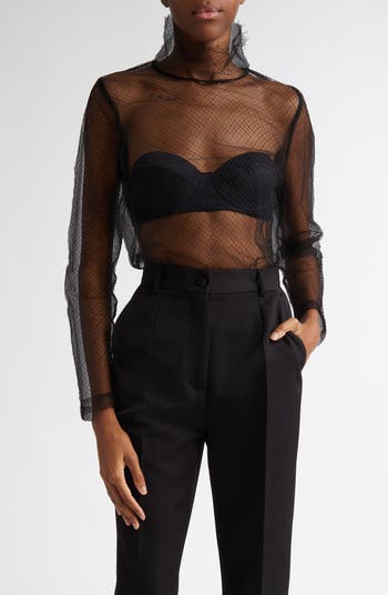 Featured as both an underpinning and an overlay throughout D&G's fall '24 runway show, this sheer top crafted in a delicate mesh goes opaque only at the neckline details and seams.