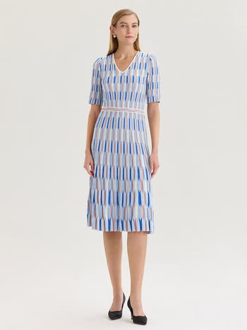 This fit & flare geometric soft knit midi dress is a spring-ready favorite for garden parties and daytime celebrations, combining feminine movement with effortless comfort. Crafted in a soft, breathable knit with an easy pullover design, it features a flattering waist-defining silhouette and elegant geometric pattern. Perfect for spring events, brunches, and outdoor occasions, this dress delivers polished ease, modern femininity, and versatile seasonal style.