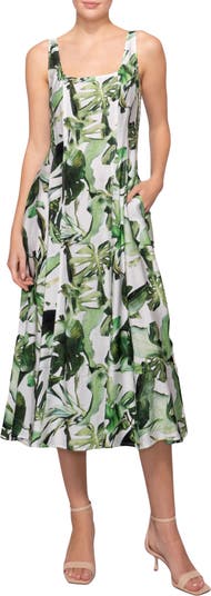 A seamed bodice creates a curve-skimming fit-and-flare silhouette for this lightweight sundress made with a comfortable smocked back panel and on-seam pockets.