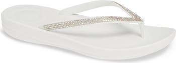 Rows of sparkling crystals lend a glam update to a classic flip-flop that takes you easily from beach to barbecue. Ultralightweight iQushion microbubble foam cushioning, built-in arch support and a flexible, slip-resistant sole take the surfer style from ordinary to extraordinary.