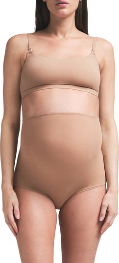 This pullover nursing style clips at the adjustable straps to fully unhook for convenient breastfeeding and pumping. Made of the brand's best-selling buttery fabric that stretches to twice its size and featuring an elastic underband for bust support, this functional style is designed for your ultimate comfort pre- and post-pregnancy.