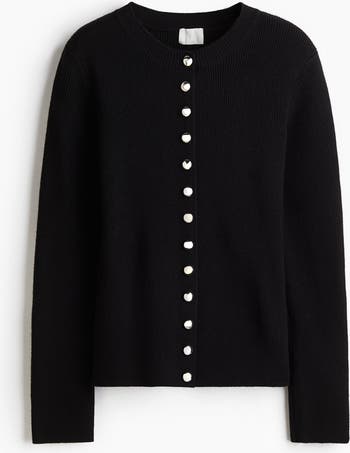 Fitted cardigan in a soft knit with a round neckline and metal buttons down the front.