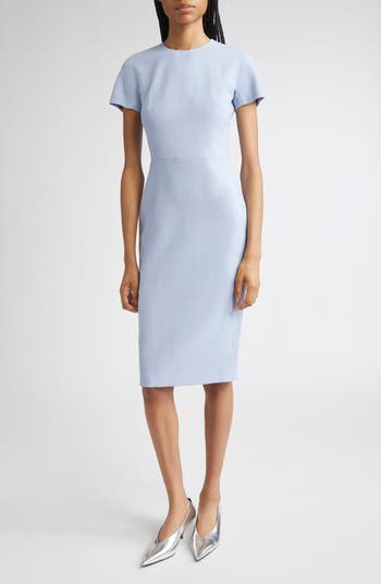 This T-shirt–inspired sheath dress is a foundational piece from the label's archive and has been updated in the season's pale-blue delphinium hue. It's tailored with darts, creating an unstudied sophistication in a figure-skimming silhouette. An exposed full-length two-way back zip lets you decide how far you want the back slit to reach.