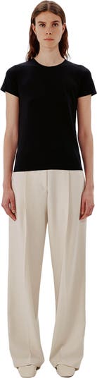 Made in our custom organic cotton and lyocell blend, the Fitted Tee is a hero piece in our Core Collection. A more tailored, body-skimming take on the classic t-shirt, pair with the Gathered Circle Skirt for effortless impact. This style runs small; we recommend sizing up. The 100% organic cotton we chose for this shirt ensures maximum strength and softness. The lyocell fiber comes from an FSC Certified supplier focused on reducing and recovering their use of water, chemicals, and energy within the wood pulp and fiber production processes. The addition of a small amount of elastane helps to improve strength and performance, helping to extend the garment's lifetime.