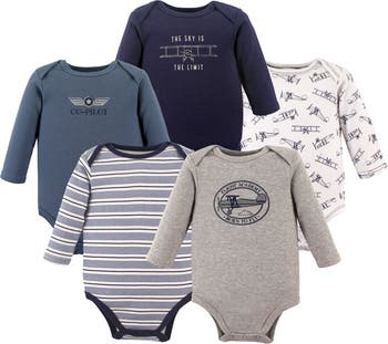 Hudson Baby long-sleeve bodysuits are an essential part of baby's wardrobe. Our bodysuits feature adorable prints, embroideries, stripes and solids and provide a comfortable base layer that's great for pairing with pants, shorts, or even wearing under outfits. Our bodysuits are comfortable and cozy for all-day, everyday wear for your little one.