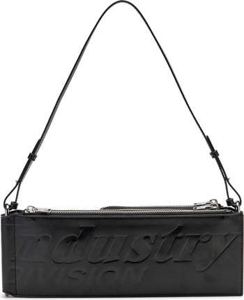 Playful modularity distinguishes this off-the-runway bag built around a folded, hinged construction that evolved originally from a belt design.