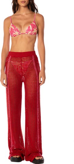 You'll be ready for a sunny getaway in eye-catching crochet pants with a relaxed, wide-leg silhouette that will instantly elevate your poolside look.