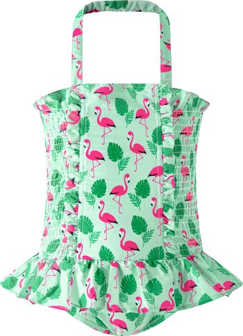 Whimsical and refined, this flamingo print swimsuit is designed for poolside fun with timeless appeal. Featuring delicate ruffle detailing and a classic silhouette, it offers comfort, coverage, and standout style.