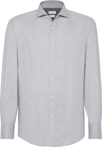 - Placket closure with mother of pearl buttonsSpread collarCuffs have two mother of pearl buttonsSlim fit