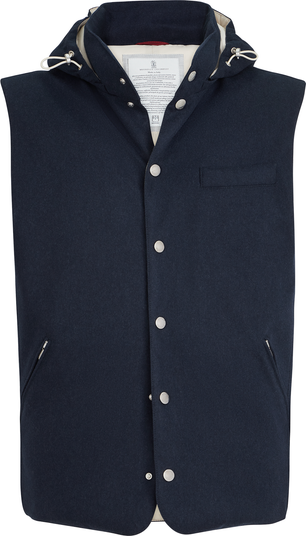 Wool flannel is a classic lightweight and compact fabric that perfectly expresses the qualities of this precious natural fiber. The addition of a thin bonded layer enhances protection from the elements without compromising breathability. A silk and cotton lining is combined with a lightweight Thermore® padding, a high-quality technical material that guarantees a balanced weight without compromising proper protection.