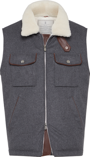 Wool flannel is a classic lightweight, compact fabric that perfectly conveys the qualities of the refined natural fiber. The addition of a thin bonded layer enhances protection from the elements without compromising breathability, while the high-quality goose down and feather padding completes the garment. All of the filling is acquired exclusively from European suppliers who are members of the EDFA (European Down and Feather Association), guaranteeing animal and environmental welfare.