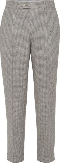 - Zip closure with button, metal hook and backing buttonSlanted front pocketsPleatBack welt pocketsCuffed hemLining to knee