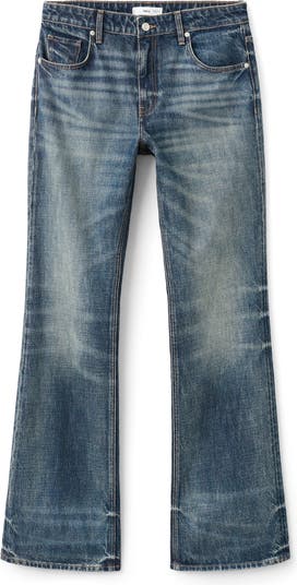 Made from nonstretch denim in a faded finish, these jeans feature a mid-rise waist and full-length flared legs to add a casual-chic vibe to everyday outfits.