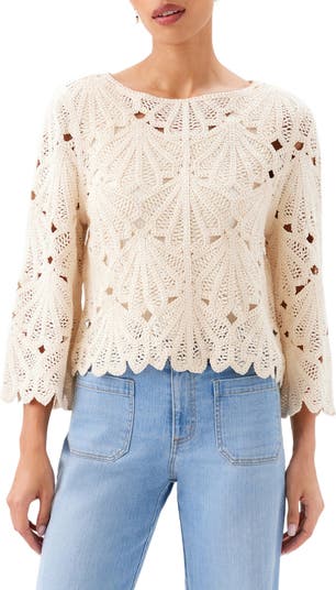 Crafted with a crochet-inspired fabric, this flare-sleeve top delivers a beautifully textured addition to your warm weather ensembles.