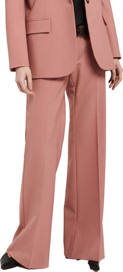 Wool blend flare trousers with pockets and refined cut.