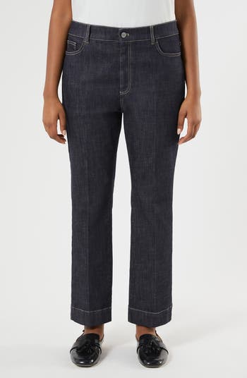 An ankle-grazing length allows you to show off your full 'fit in jeans made from low-stretch cotton and done in an inky-blue rinse.
