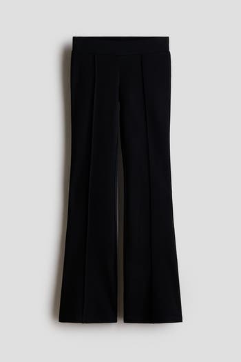 Leggings in dense jersey with an elasticated waist, sewn-in creases down the front of the legs and flared hems. Fake welt pockets at the back.
