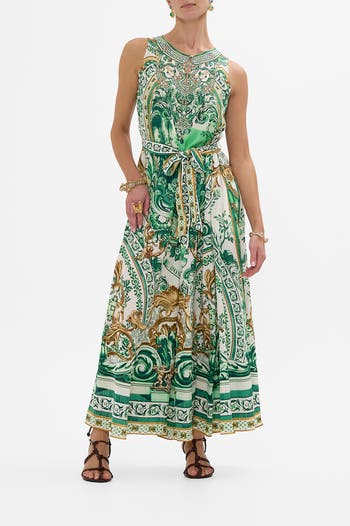 Designed in Australia, The Corridor Of Calm Flared Jumpsuit is inspired by the forever fascinating Queluz Palace. Lovingly handcrafted, this luxury jumpsuit features a relaxed flared silhouette with generously flared wide legs and a slightly elongated crotch for effortless wearability. It has the option of cinching in the waist with wide waist ties.