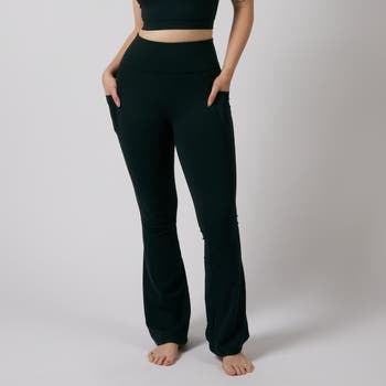 Your favorite leggings, with a little extra flair. The Flared Legging combines a supportive high-rise fit with a power mesh waistband, smooth no-seam design (= no wedgies), and just the right amount of flow at the hem. Made from 75% recycled nylon with four-way stretch, these leggings move with you, wick away sweat, and bounce back wear after wear. Side panel pockets keep your essentials handy, while a reflective logo at the waistband keeps you visible on the go. This baby is proof that comfort and style can move as one.