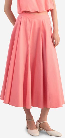 Love to twirl in this crisp poplin midi skirt accented with godets for a perfectly flared silhouette.