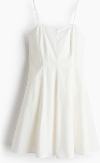 Short dress in crisp cotton poplin with a picot-trimmed sweetheart neckline, narrow, adjustable shoulder straps and a concealed zip at the back. Fitted bodice, a flared skirt and visible seams down the front and back. Lined.