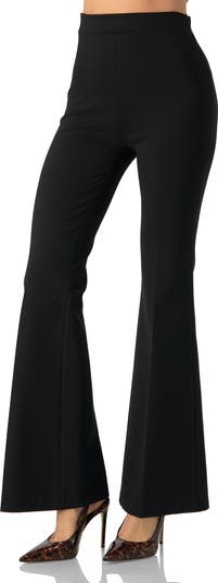 Sleek flared trousers without pockets, offering a smooth and elegant silhouette.