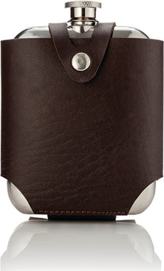 Flasks were made for voyagers. Snap your silver five-ounce vessel into a rich chocolate-brown carrying case and set off on the next adventure. Disclaimer: Flasks aren't meant for storing alcohol long-term. Leaving liquor in a flask for too long might lead to undesirable flavors. To keep things fresh, finish or replace the contents within a few days. Cheers and happy sipping! WARNING: This product can expose you to DEHP, which is known to the State of California to cause cancer and birth defects or other reproductive harm. For more information go to www.P65Warnings.ca.gov.