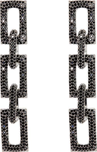 The block link has replaced the previous link earrings. Crafted with square chain adorned with pavé diamond cut crystals, these earrings exude a dazzling sparkle. A must-have accessory for any wardrobe.