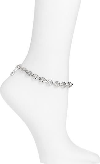 Flat cable links form this sleek anklet designed to catch the light with every step.