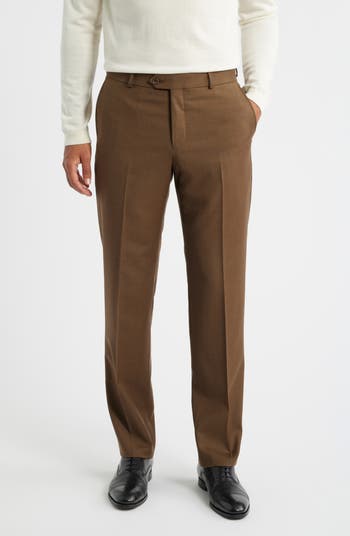 Crisp and smart, these all-wool dress pants tailored from durable serge fabric feature versatile flat-front construction that pairs well with any semiformal look. They sit just below the waist with a bit of added room in the seat and thighs to bring easy movement to the classic profile.